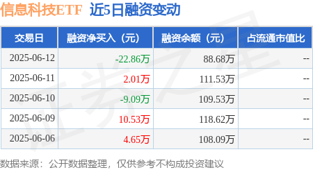信息科技ETF:6月12日融资买入3277元,融资融券余额88.68万元
